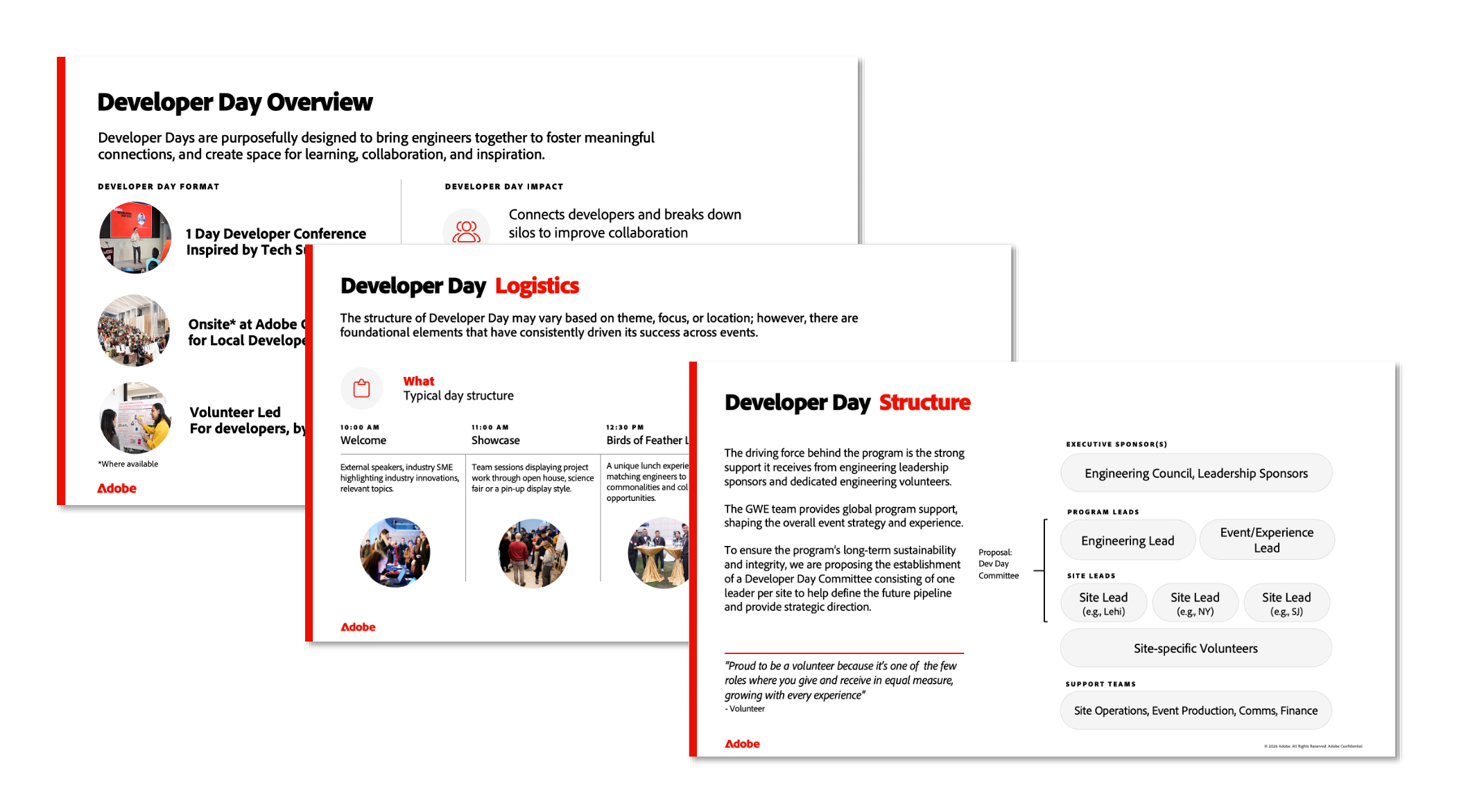 This allowed teams to run Developer Day across locations while maintaining consistency and quality, scaling from a single pilot to a global program.