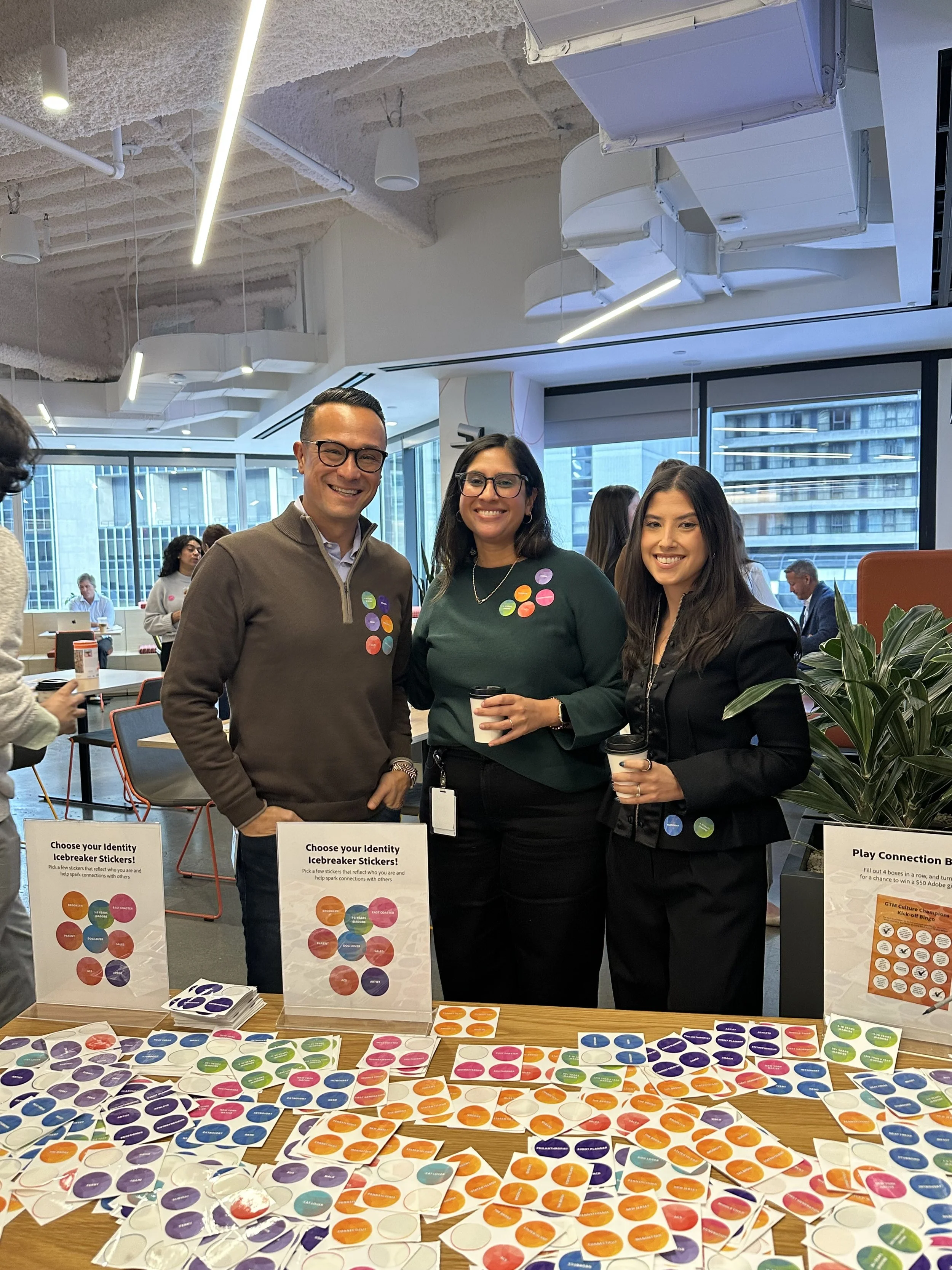 Identity icebreaker stickers (inspired by SYPartners) helped people quickly share something about themselves and made it easier to start conversations